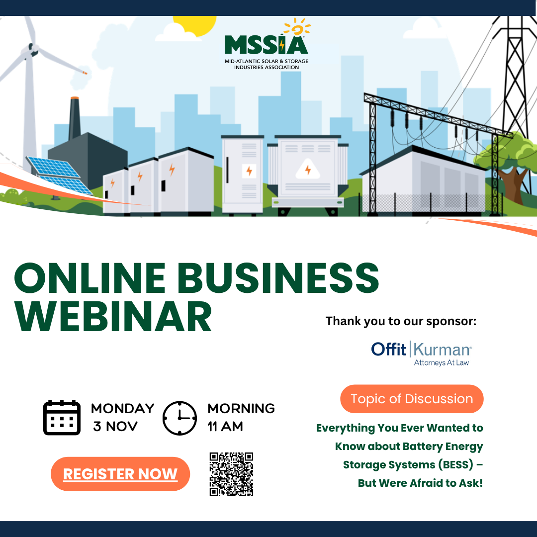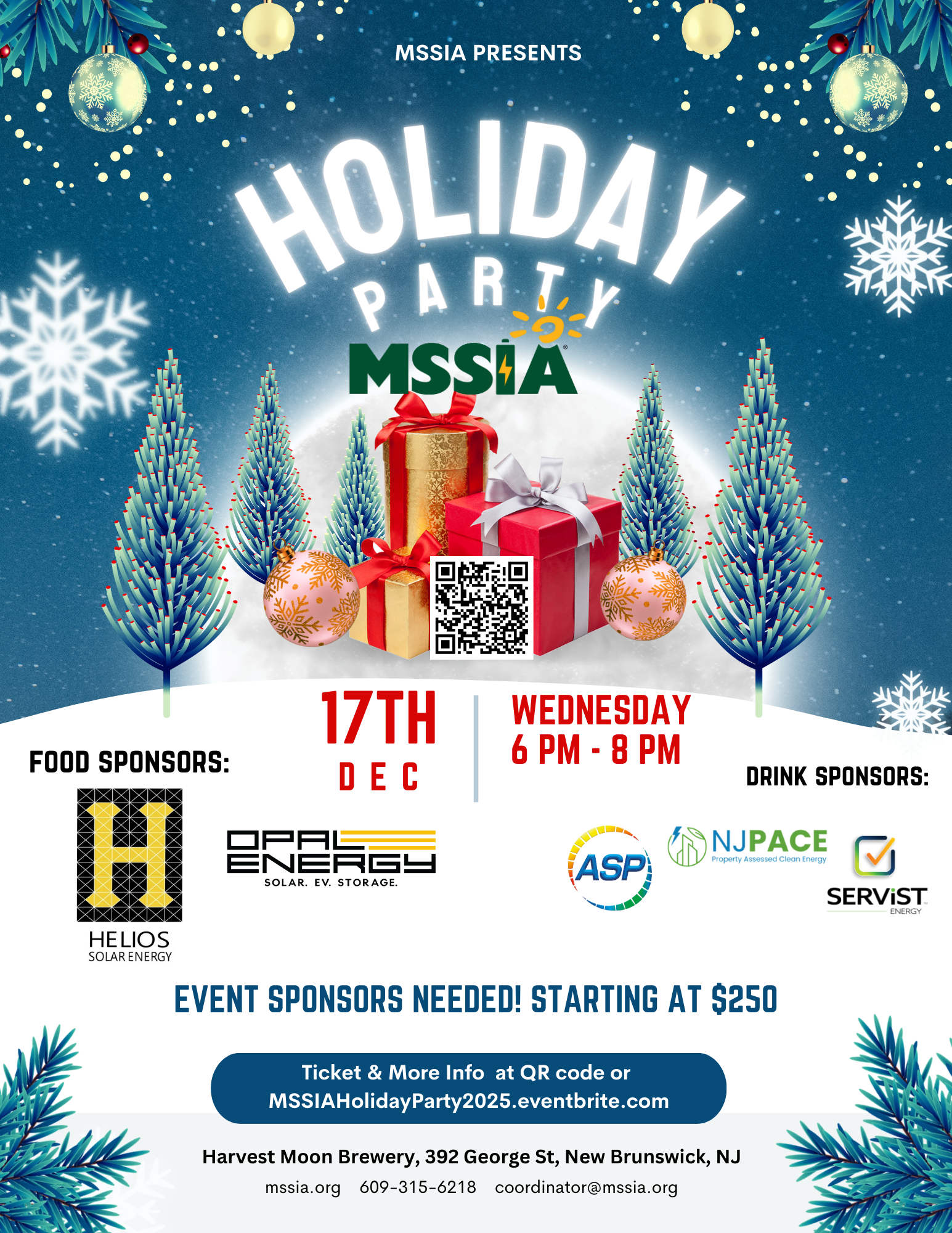 The Mid-Atlantic Solar & Storage Industries Association (MSSIA) is the premier advocacy organization representing solar and storage businesses across New Jersey, Pennsylvania, and Delaware. Through technical expertise, policy leadership, and market development initiatives, MSSIA drives the clean energy transition across the Mid-Atlantic region.